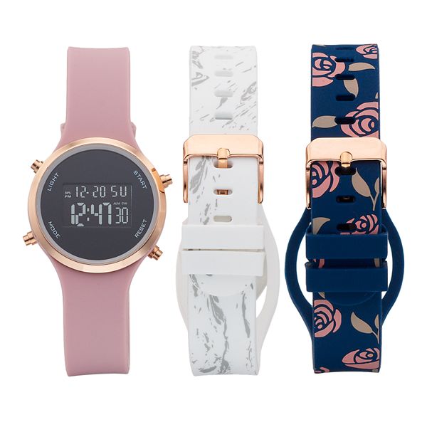 Folio Women S Digital Watch Silicone Interchangeable Bands Set