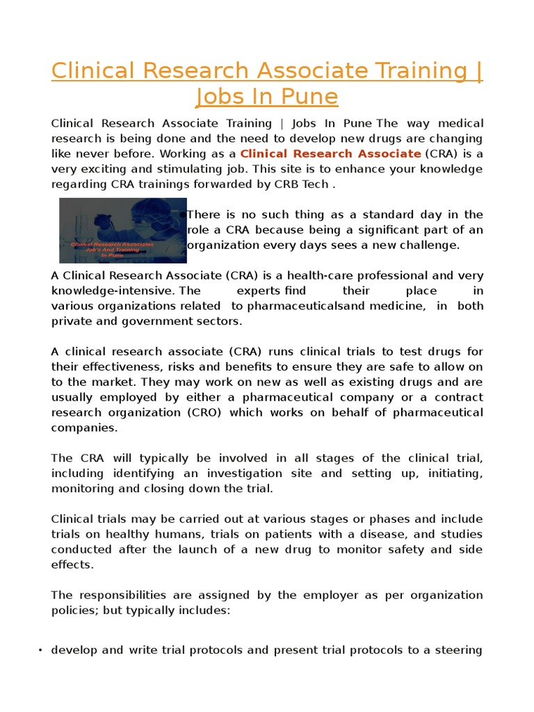 Clinical Research Associate Training Jobs In Pune Clinical Trial Pharmaceutical Drug